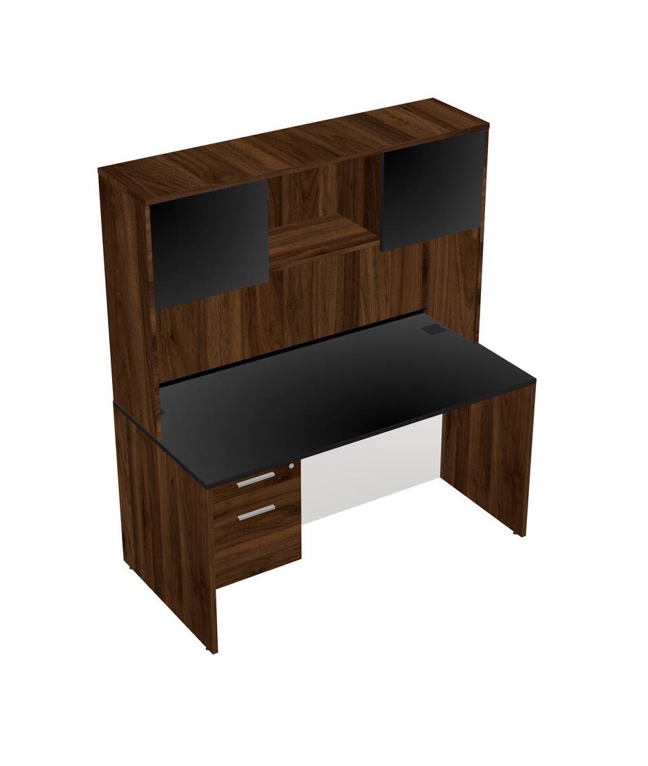 Black Rectangular Office Desk Plus Columbia Walnut Hanging Drawers And Columbia Walnut Hutch