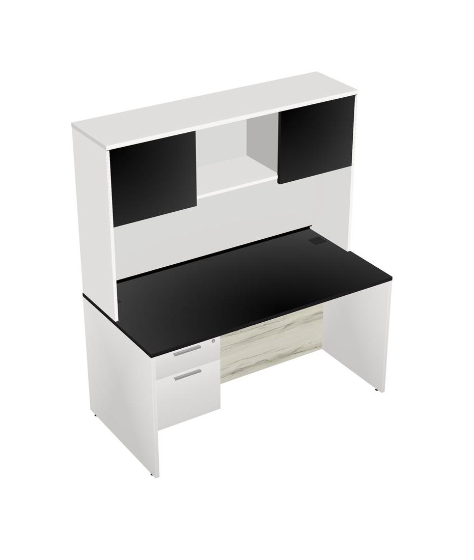 Black Rectangular Office Desk Plus White Hanging Drawers And White Hutch