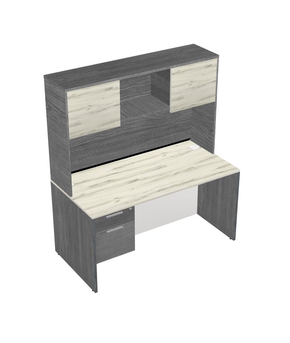Heinne Holz Rectangular Office Desk Plus Grey Hanging Drawers And Grey Hutch