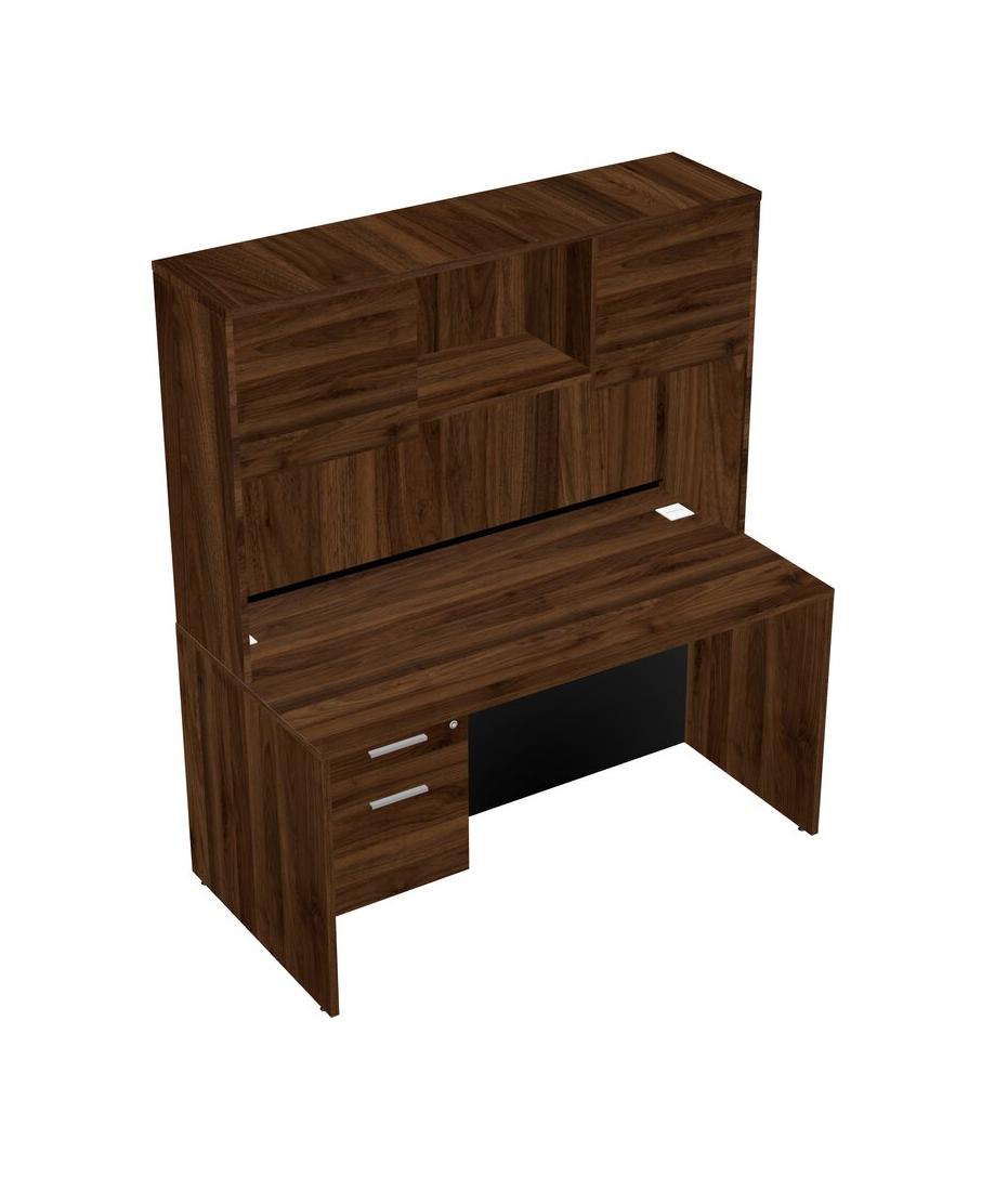 Columbia Walnut Rectangular Office Desk Plus Columbia Walnut Hanging Drawers And Columbia Walnut Hutch