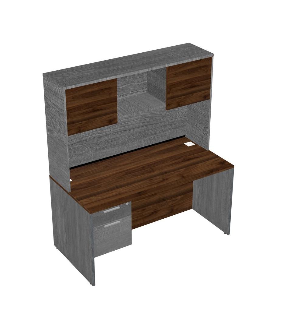 Columbia Walnut Rectangular Office Desk Plus Grey Hanging Drawers And Grey Hutch