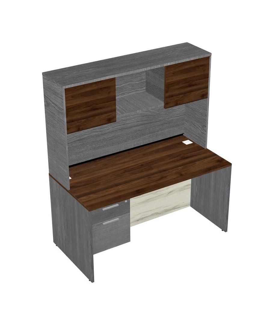 Columbia Walnut Rectangular Office Desk Plus Grey Hanging Drawers And Grey Hutch