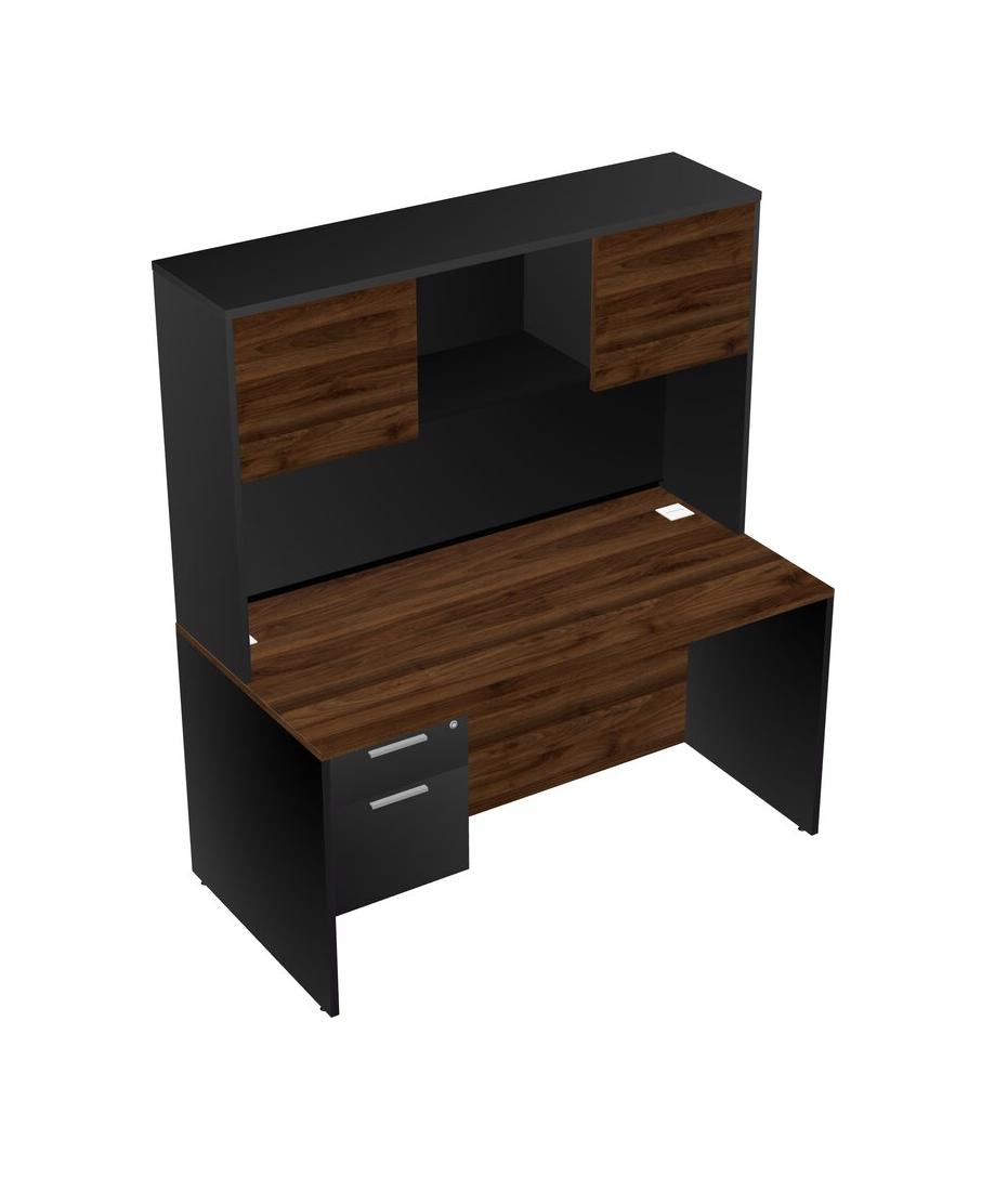 Columbia Walnut Rectangular Office Desk Plus Black Hanging Drawers And Black Hutch