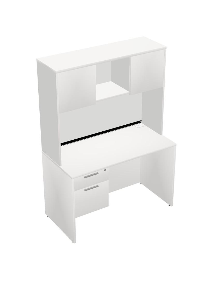White Rectangular Office Desk Plus White Hanging Drawers And White Hutch