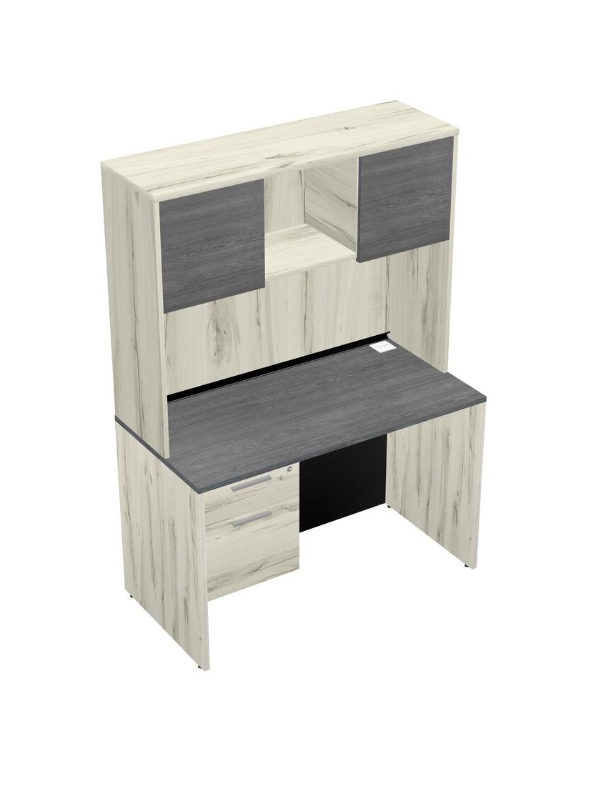 Grey Rectangular Office Desk Plus Heinne Holz Hanging Drawers And Heinne Holz Hutch