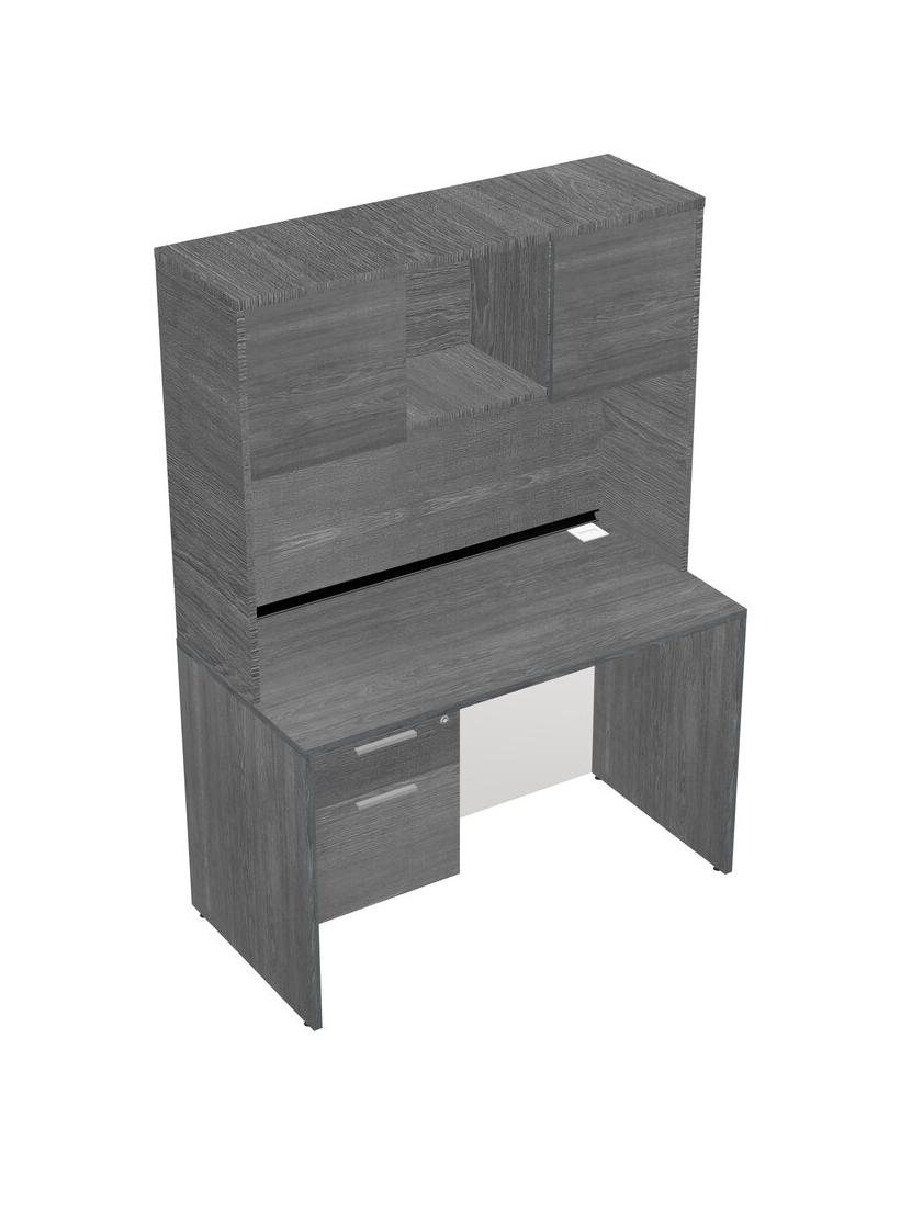 Grey Rectangular Office Desk Plus Grey Hanging Drawers And Grey Hutch