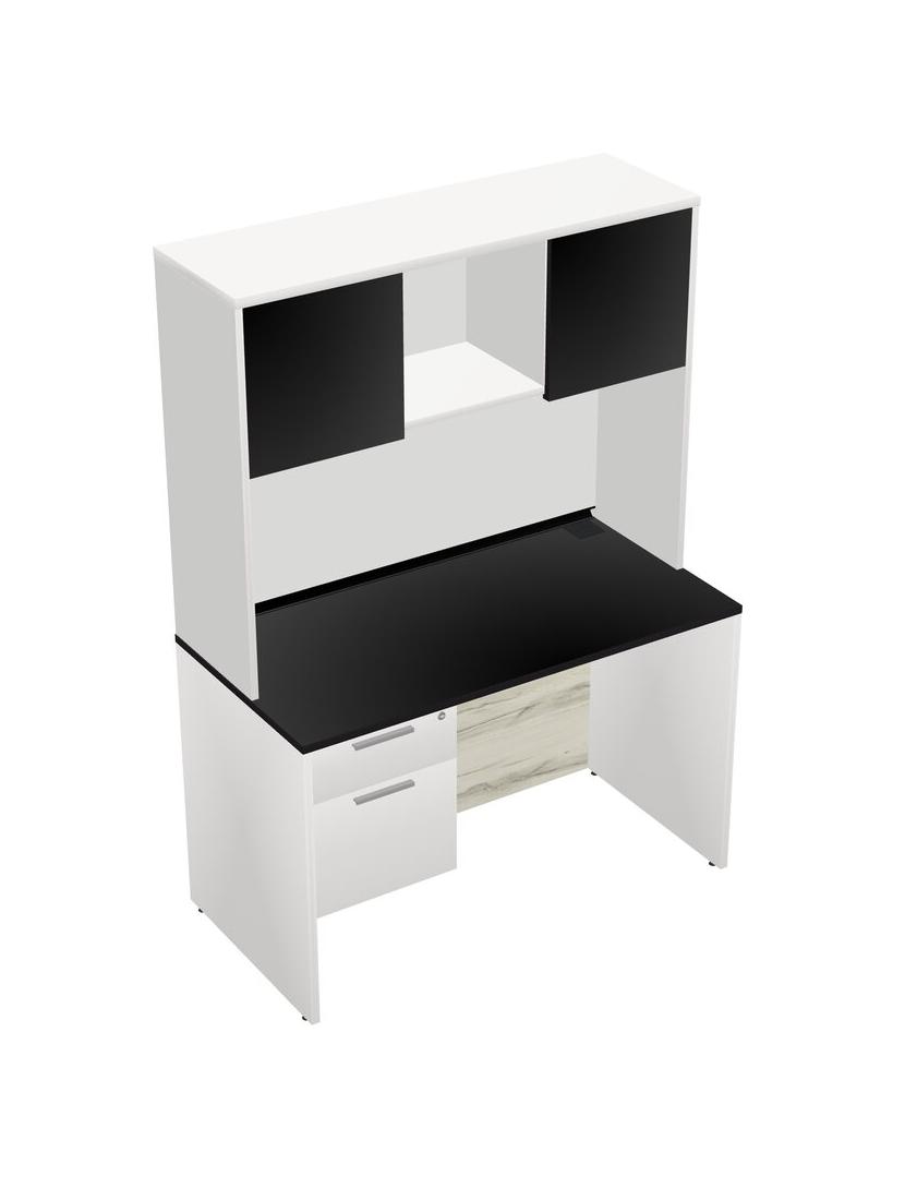 Black Rectangular Office Desk Plus White Hanging Drawers And White Hutch