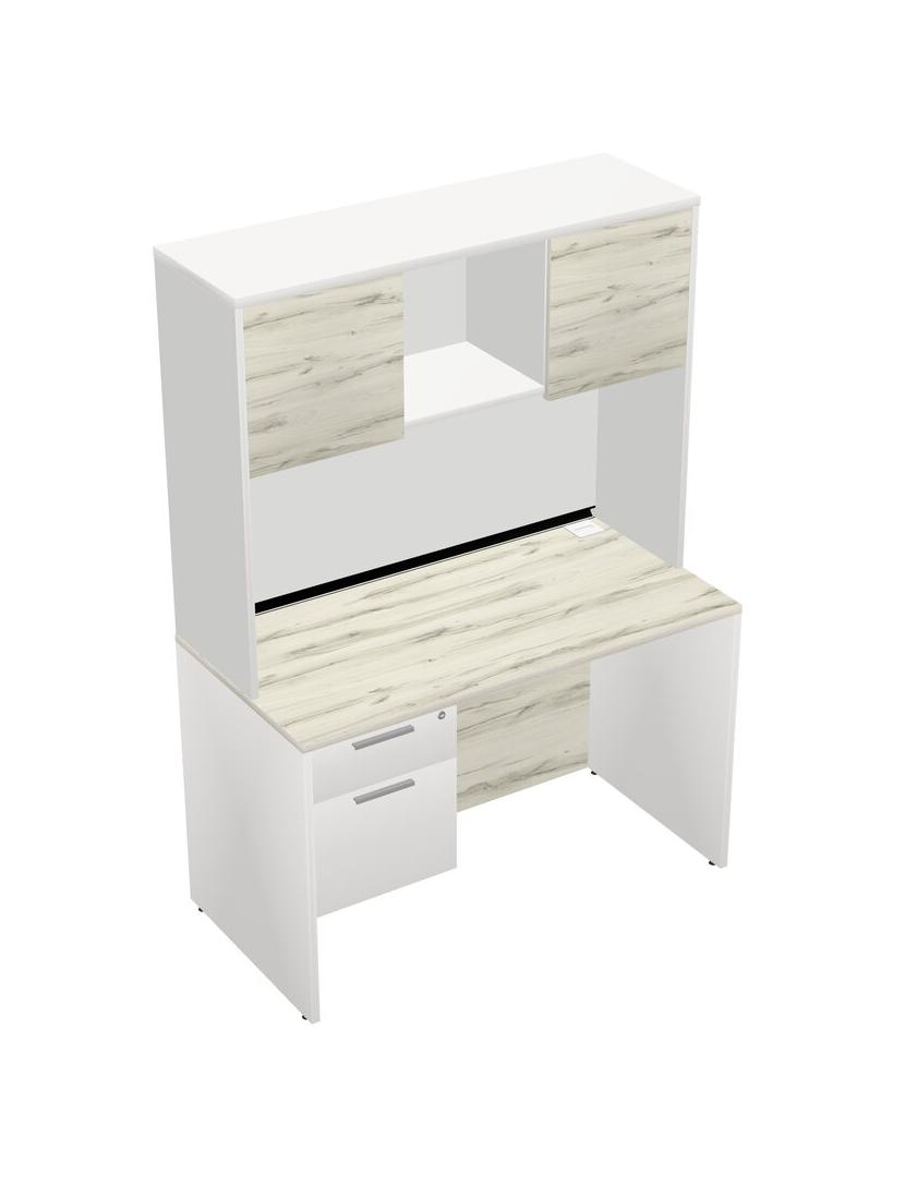 Heinne Holz Rectangular Office Desk Plus White Hanging Drawers And White Hutch