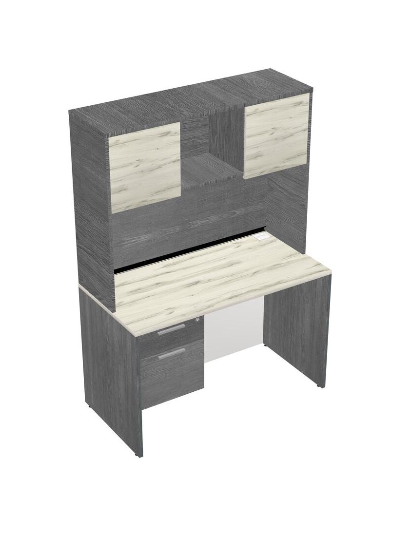 Heinne Holz Rectangular Office Desk Plus Grey Hanging Drawers And Grey Hutch