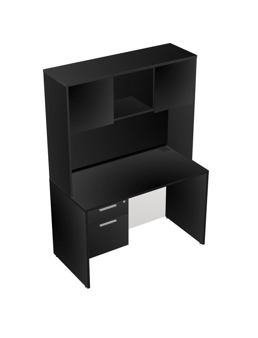 Black Rectangular Office Desk Plus Black Hanging Drawers And Black Hutch