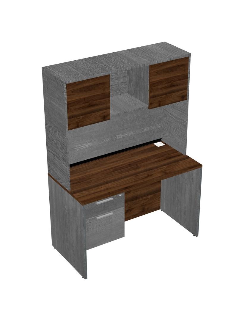 Columbia Walnut Rectangular Office Desk Plus Grey Hanging Drawers And Grey Hutch