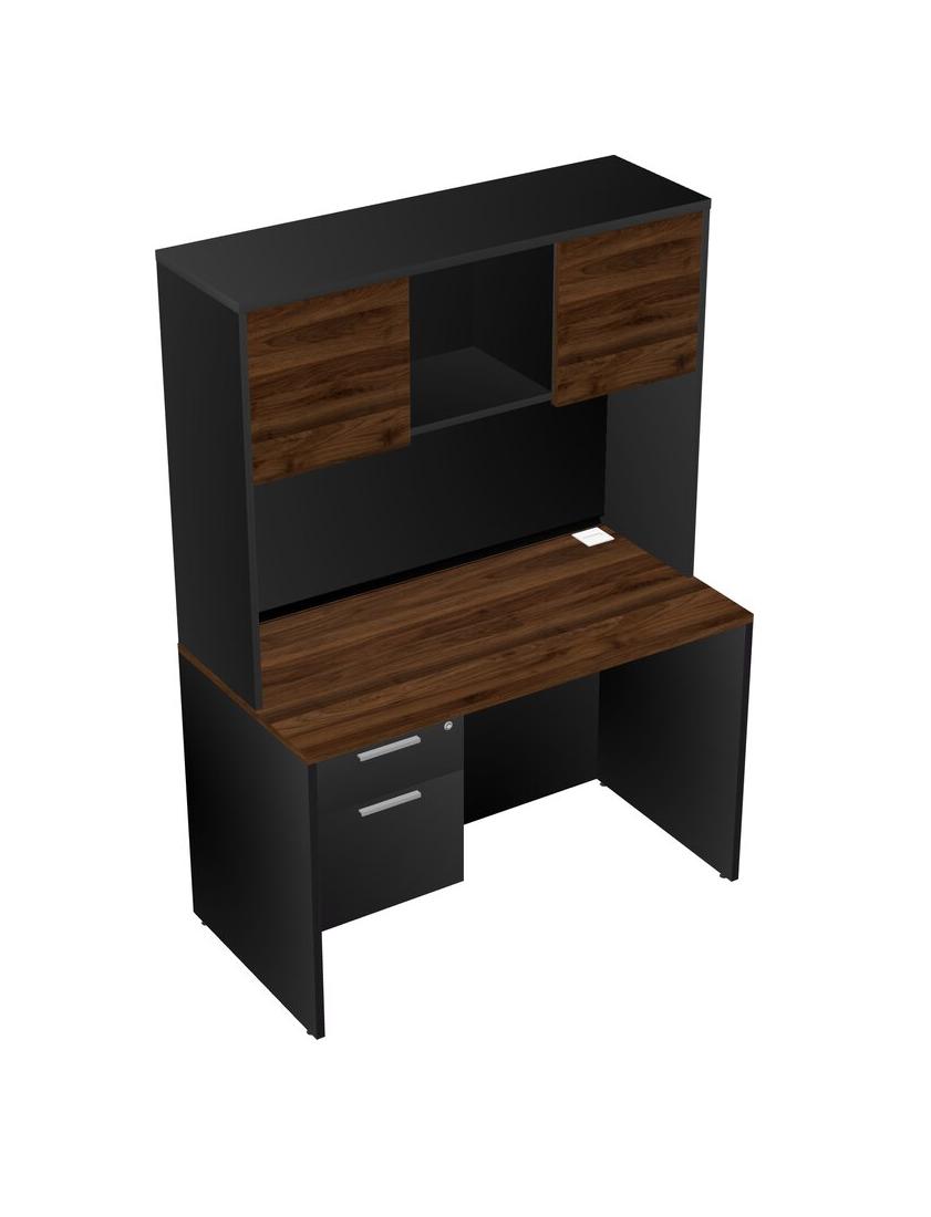 Columbia Walnut Rectangular Office Desk Plus Black Hanging Drawers And Black Hutch