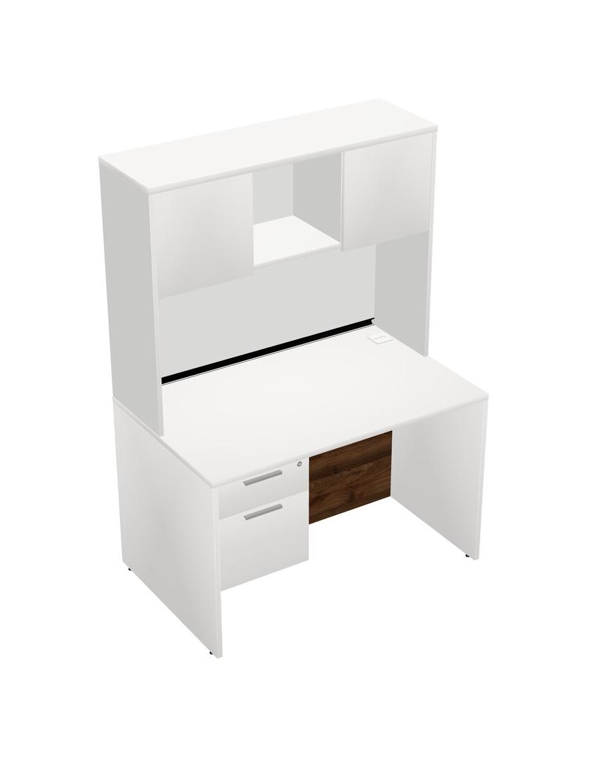 White Rectangular Office Desk Plus White Hanging Drawers And White Hutch