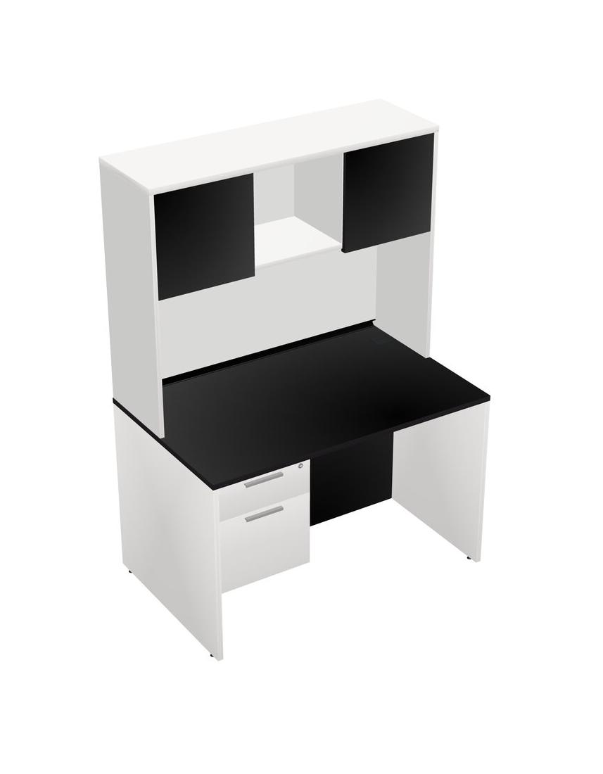 Black Rectangular Office Desk Plus White Hanging Drawers And White Hutch