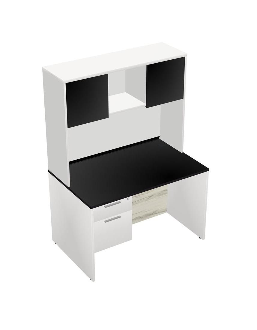 Black Rectangular Office Desk Plus White Hanging Drawers And White Hutch