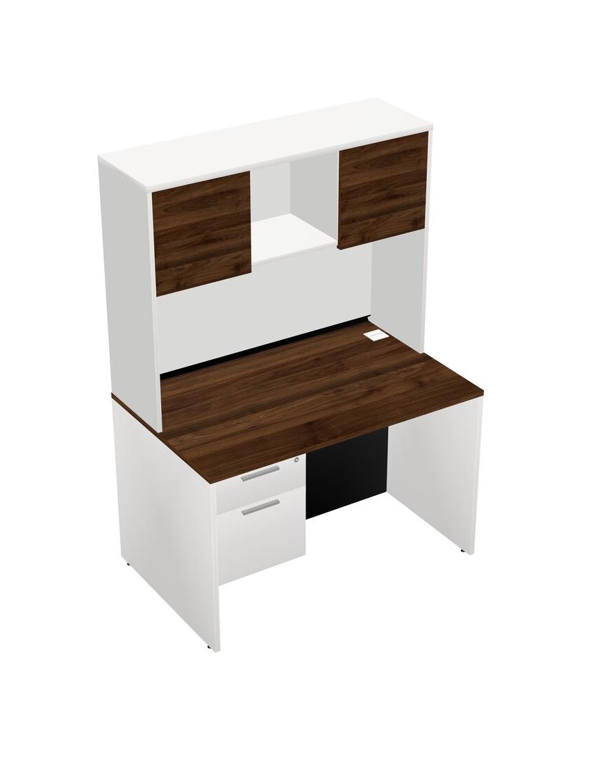 Columbia Walnut Rectangular Office Desk Plus White Hanging Drawers And White Hutch