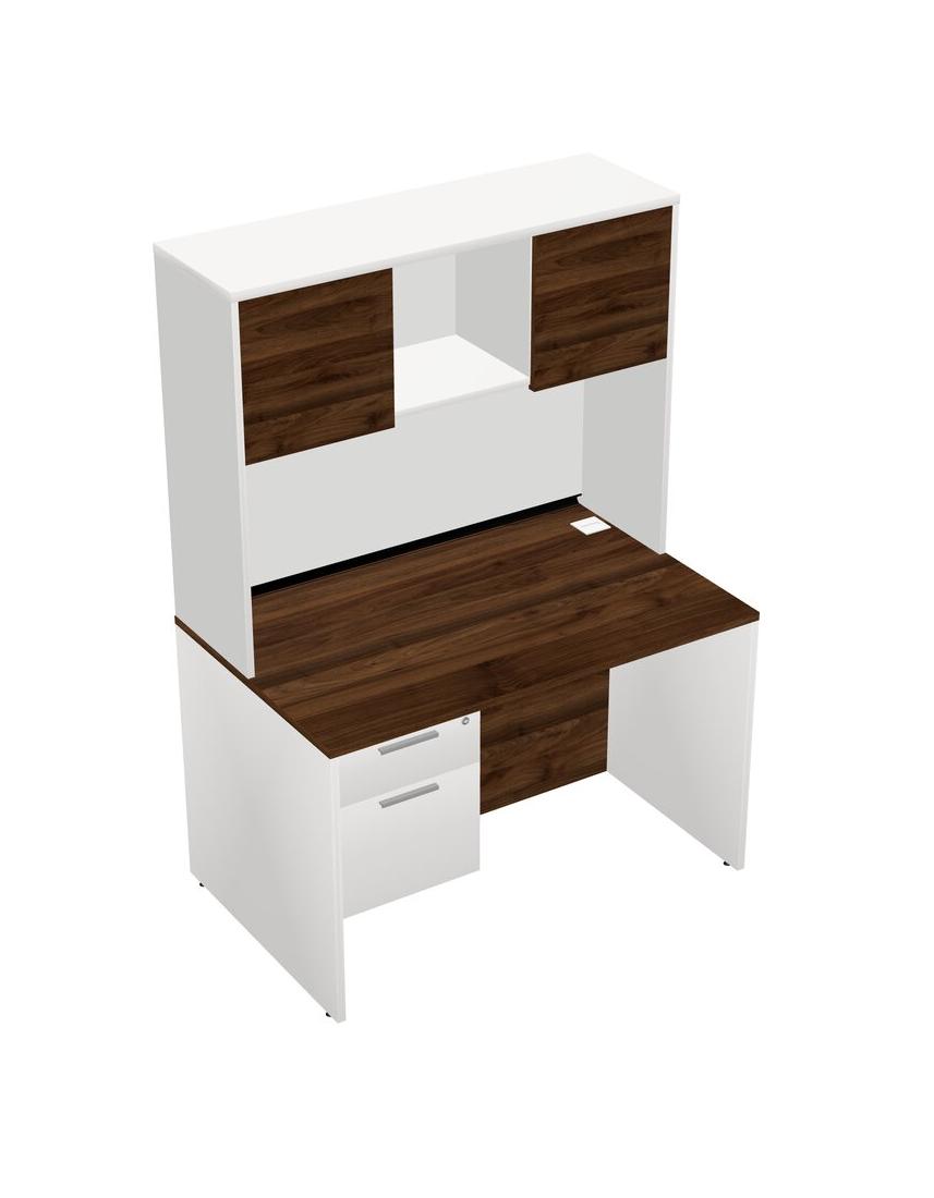 Columbia Walnut Rectangular Office Desk Plus White Hanging Drawers And White Hutch