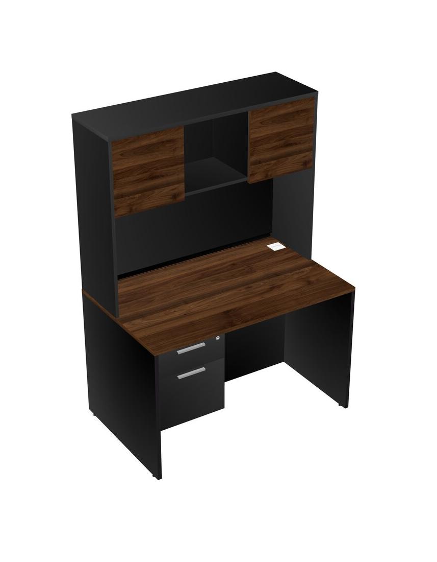 Columbia Walnut Rectangular Office Desk Plus Black Hanging Drawers And Black Hutch