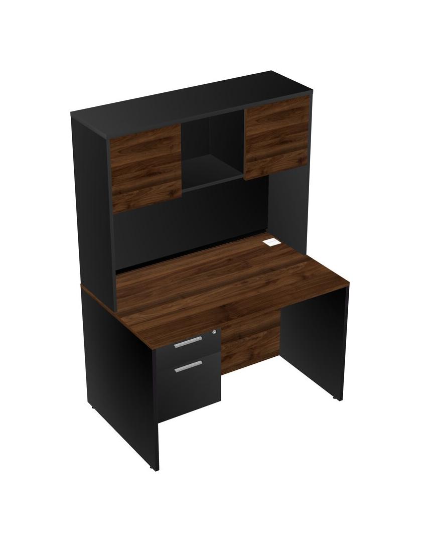 Columbia Walnut Rectangular Office Desk Plus Black Hanging Drawers And Black Hutch