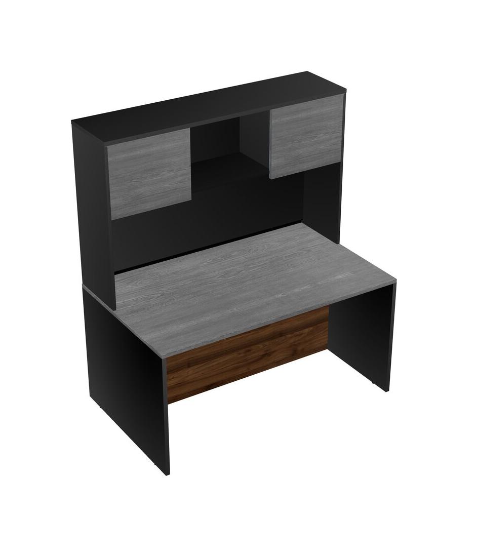 Grey Rectangular Office Desk And Black Hutch