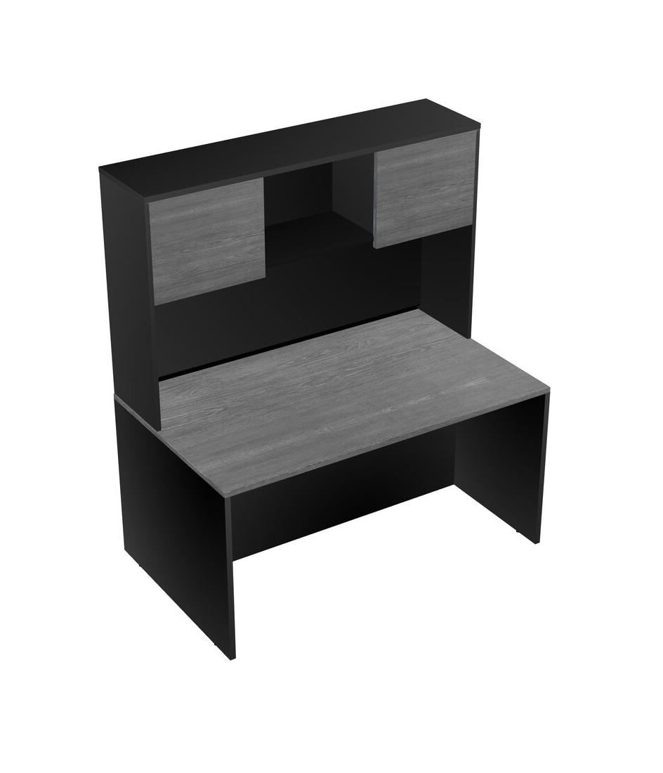 Grey Rectangular Office Desk And Black Hutch