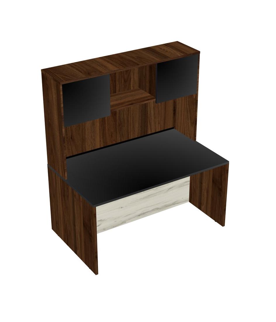 Black Rectangular Office Desk And Columbia Walnut Hutch
