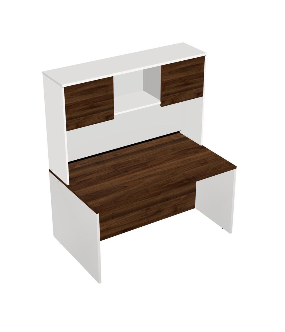 Columbia Walnut Rectangular Office Desk And White Hutch