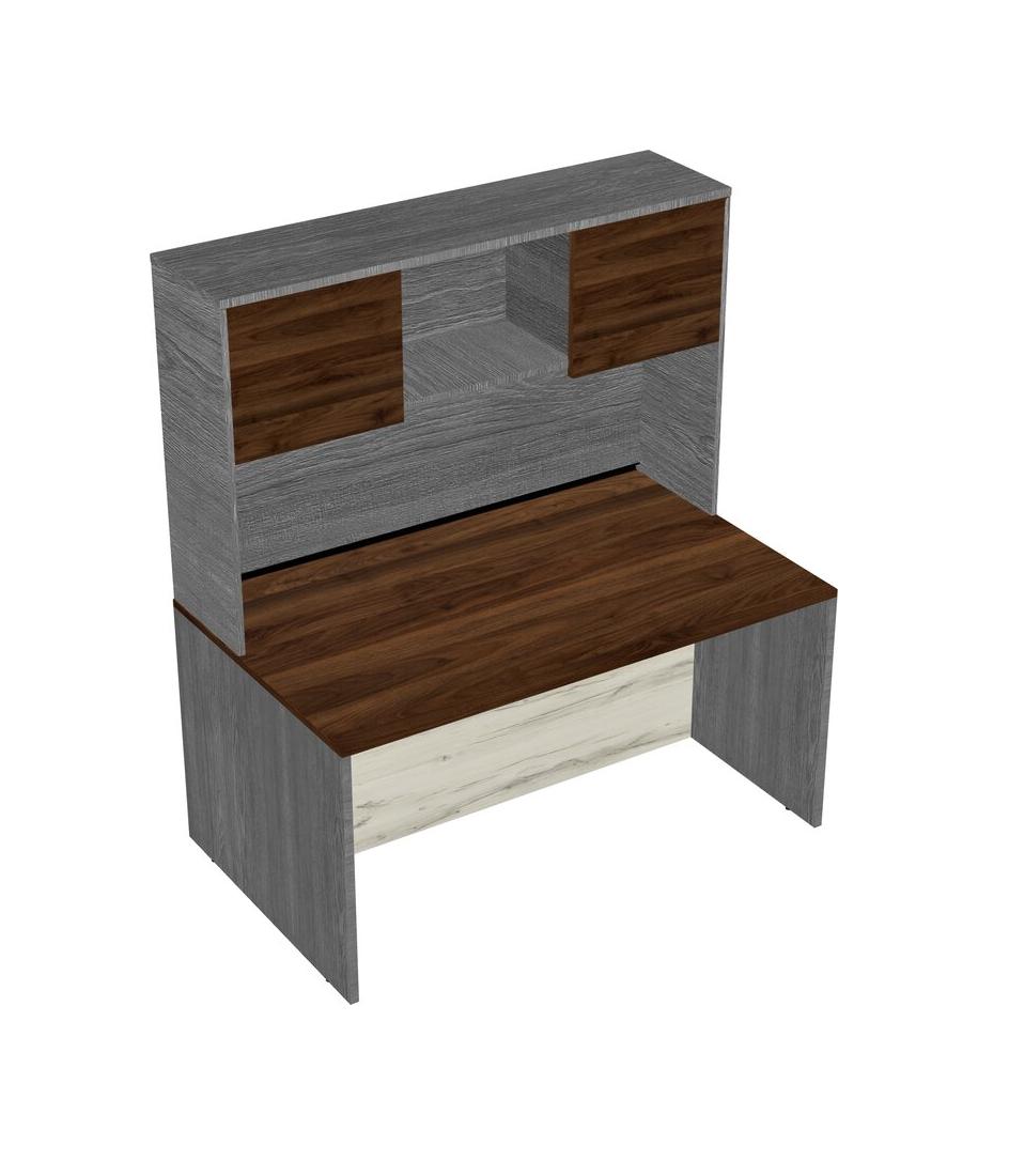 Columbia Walnut Rectangular Office Desk And Grey Hutch