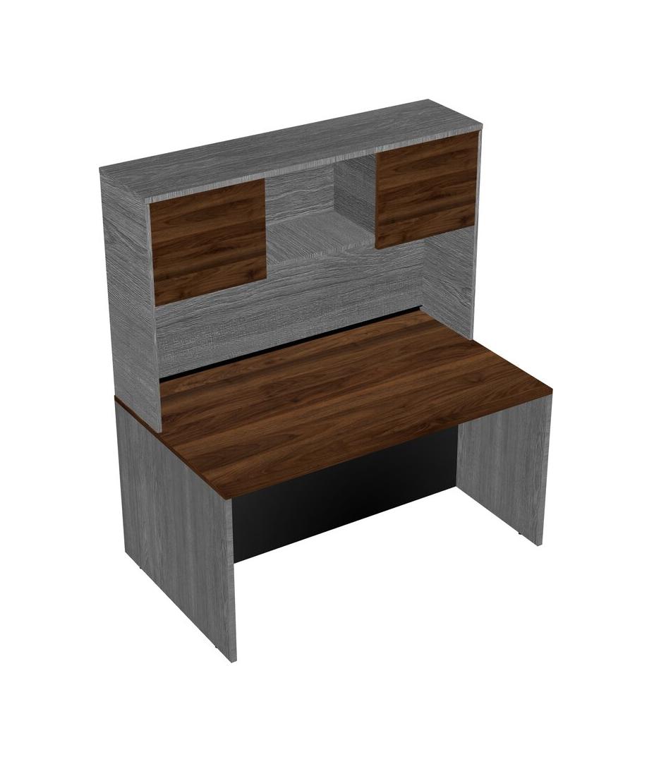 Columbia Walnut Rectangular Office Desk And Grey Hutch