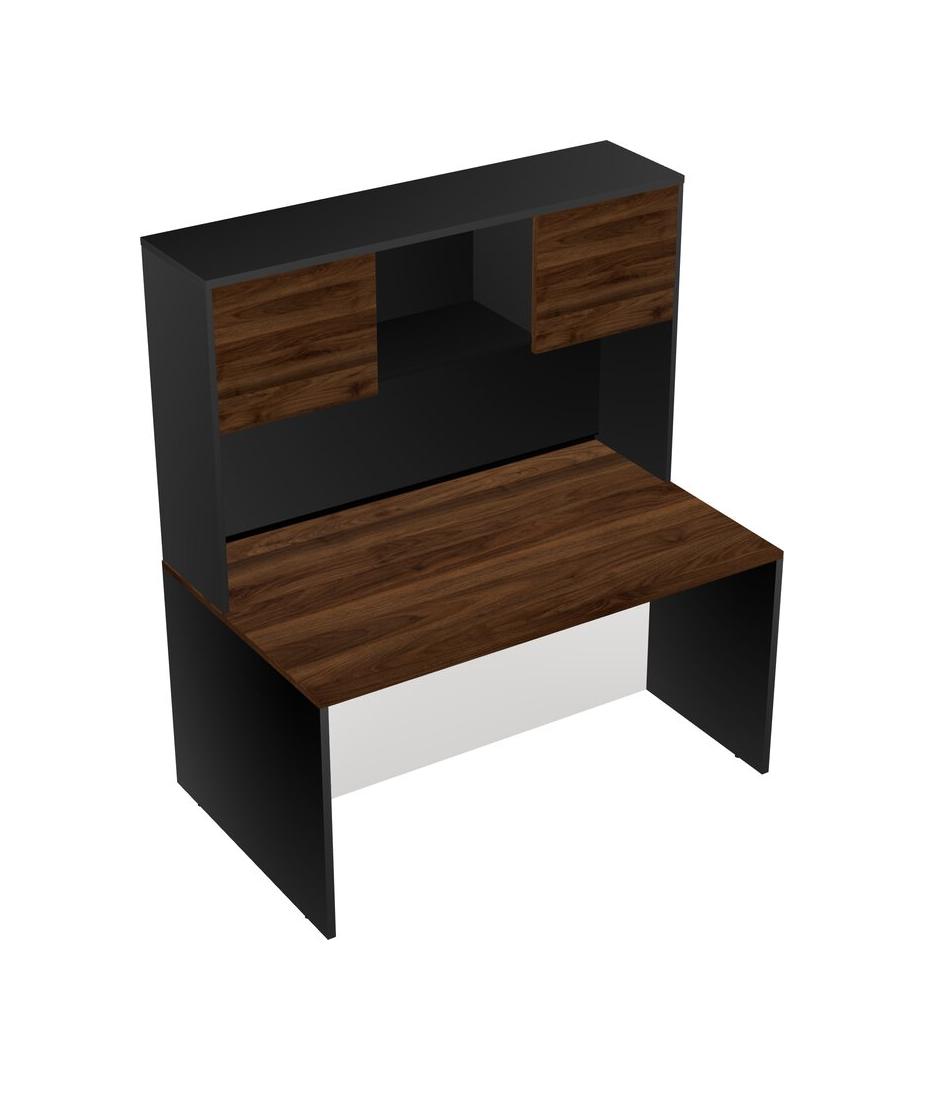 Columbia Walnut Rectangular Office Desk And Black Hutch