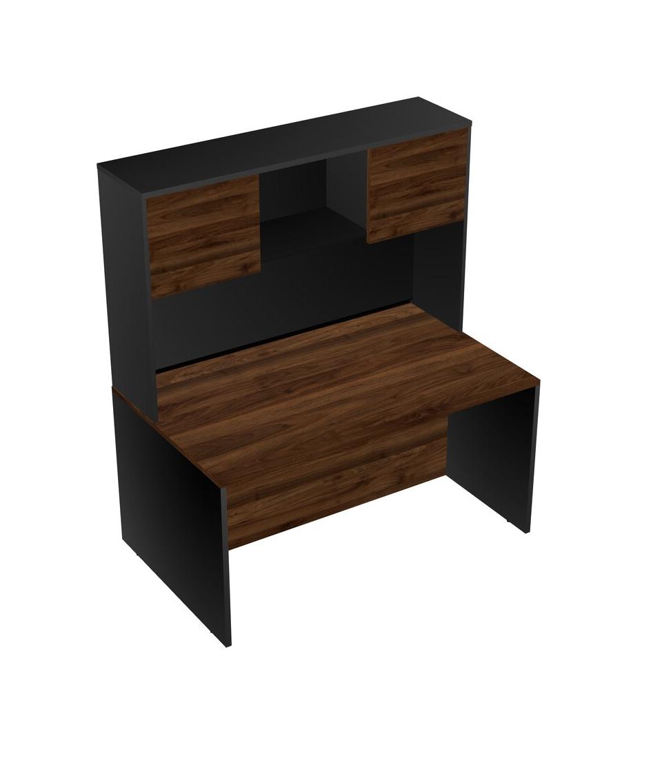 Columbia Walnut Rectangular Office Desk And Black Hutch