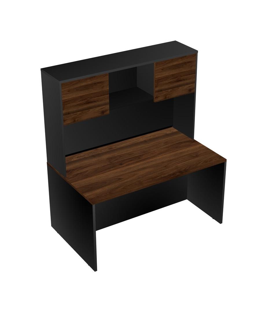 Columbia Walnut Rectangular Office Desk And Black Hutch