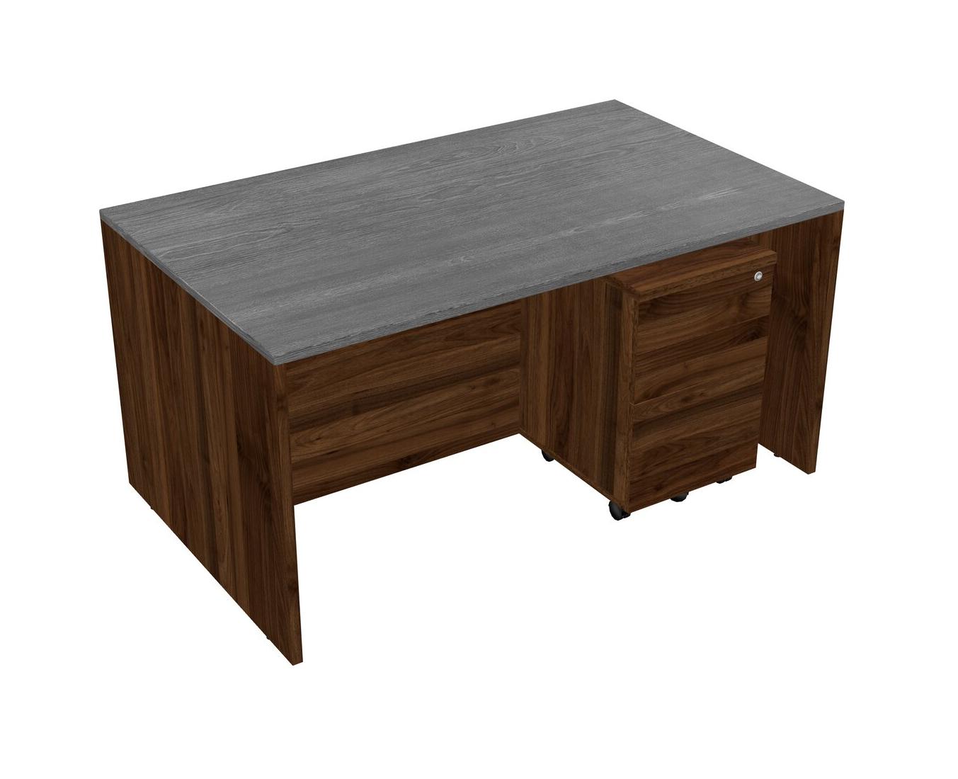 Grey Rectangular Office Desk Plus Columbia Walnut Wooden Mobile Drawers
