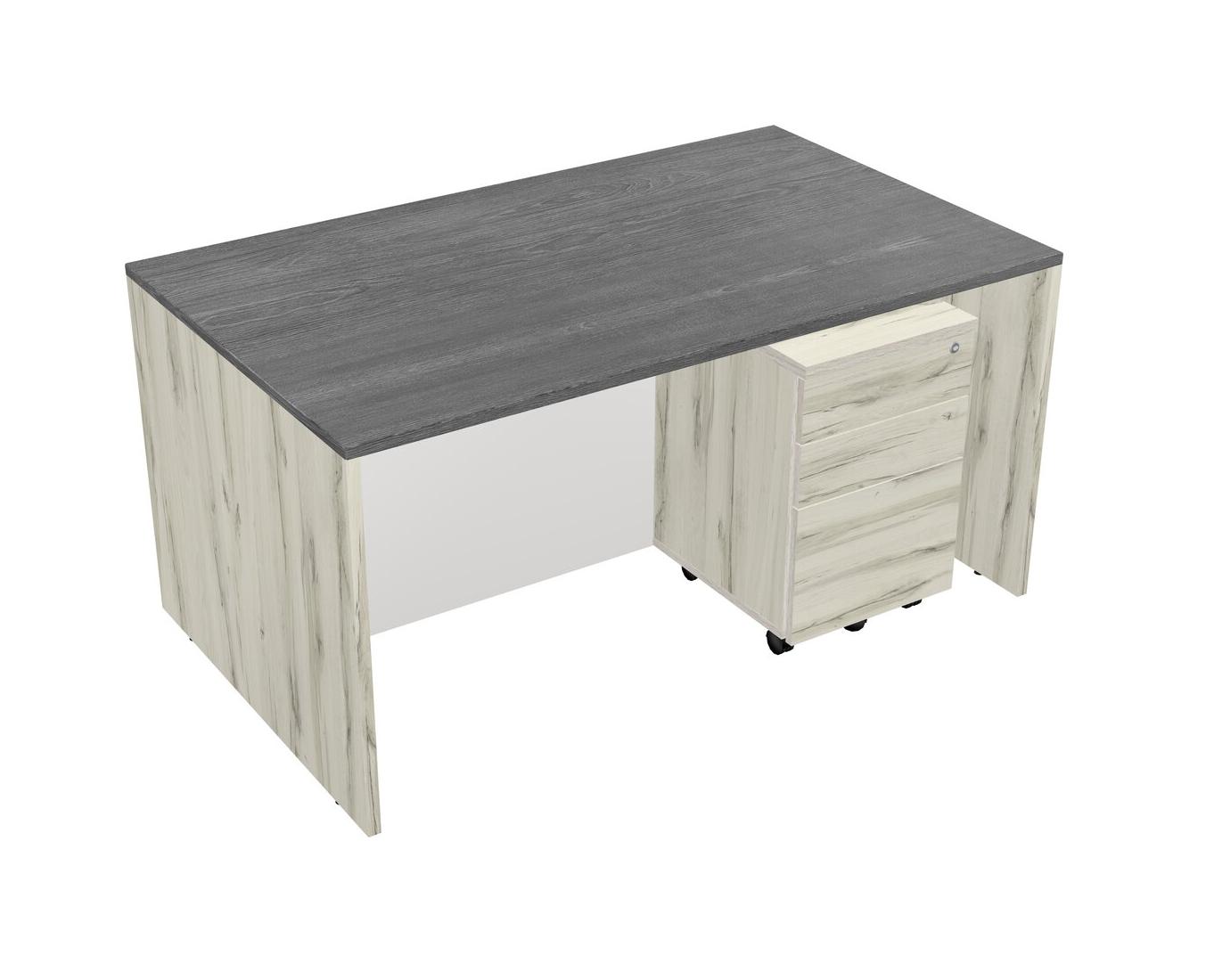 Grey Rectangular Office Desk Plus Heinne Holz Wooden Mobile Drawers
