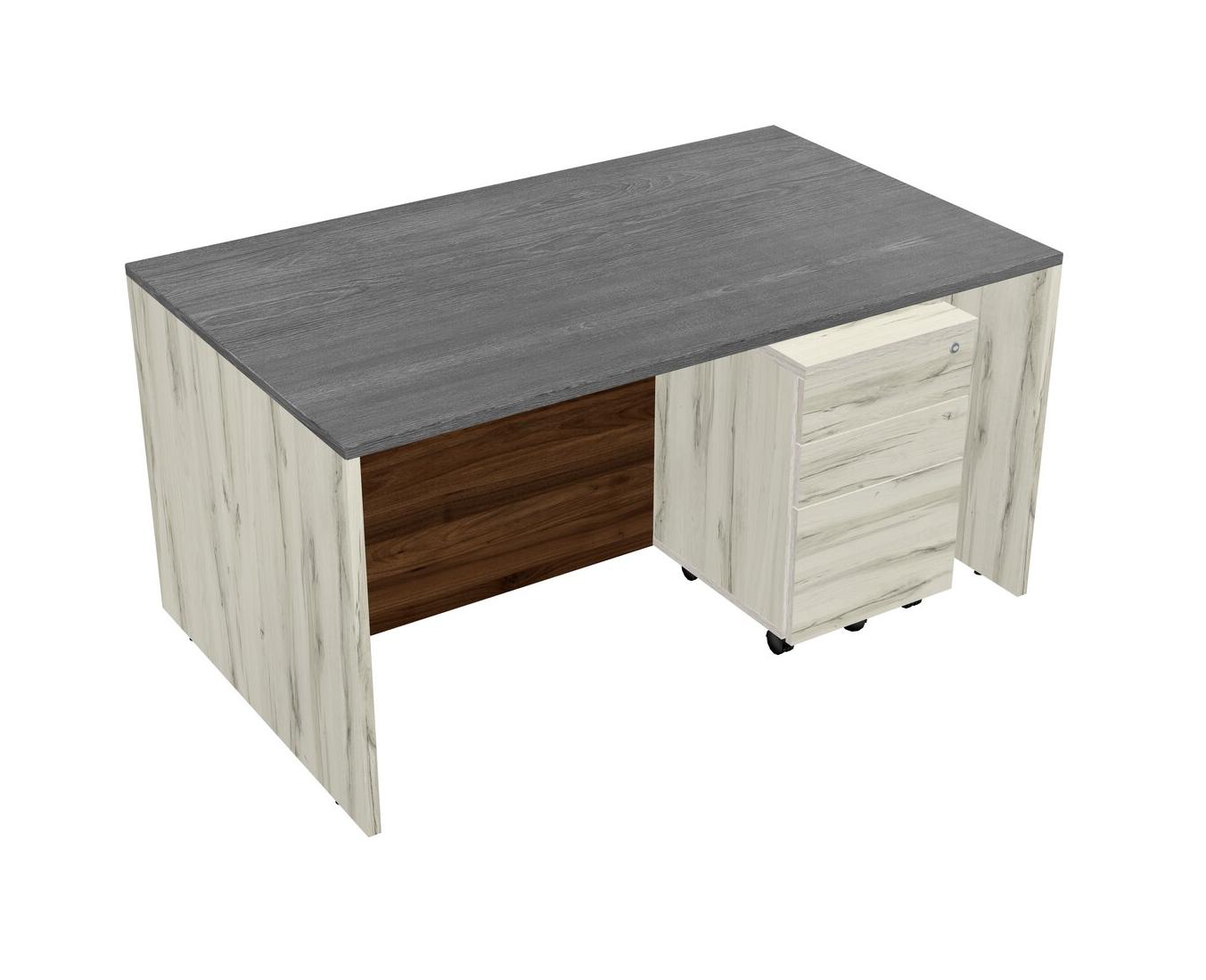 Grey Rectangular Office Desk Plus Heinne Holz Wooden Mobile Drawers