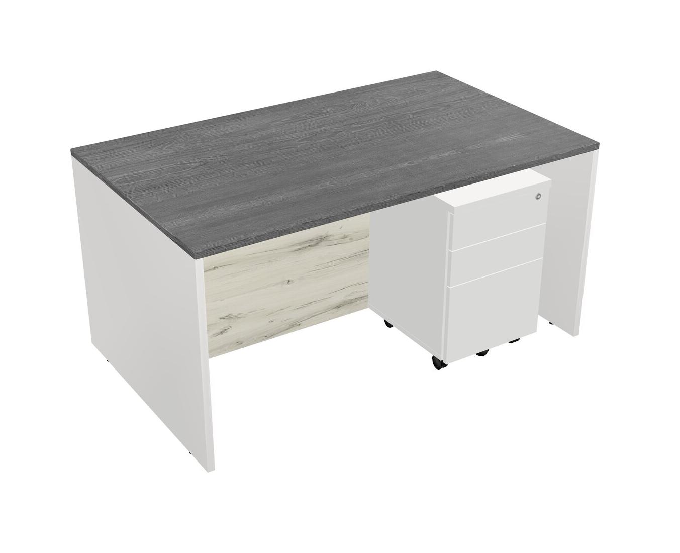 Grey Rectangular Office Desk Plus White Wooden Mobile Drawers