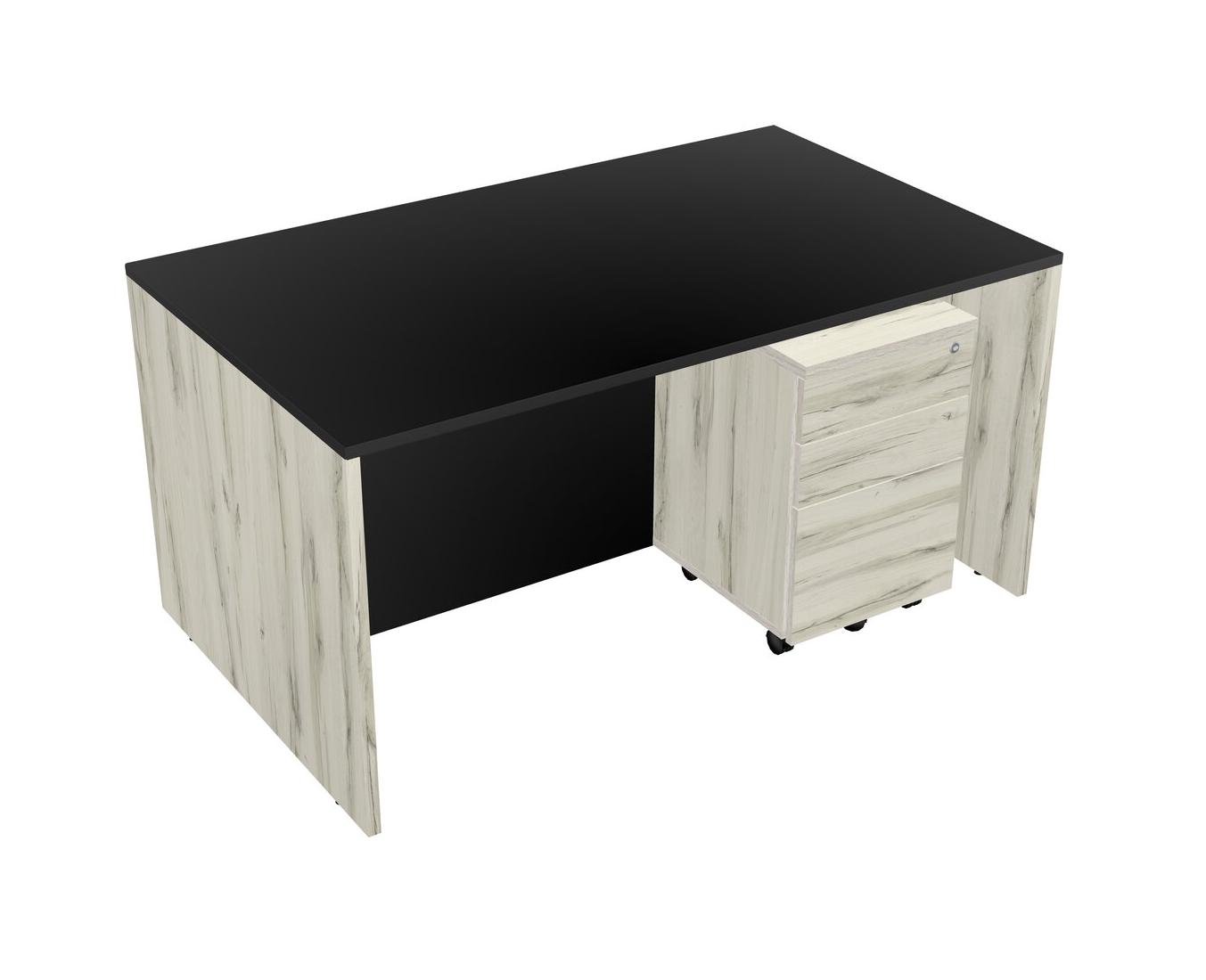 Black Rectangular Office Desk Plus Heinne Holz Wooden Mobile Drawers