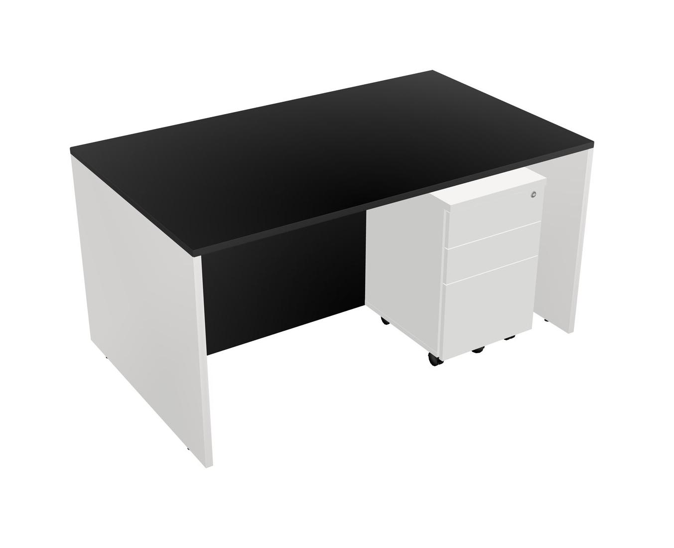 Black Rectangular Office Desk Plus White Wooden Mobile Drawers