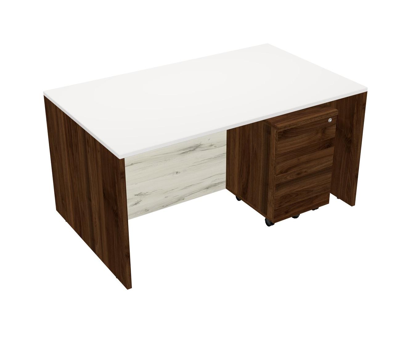 White Rectangular Office Desk Plus Columbia Walnut Wooden Mobile Drawers