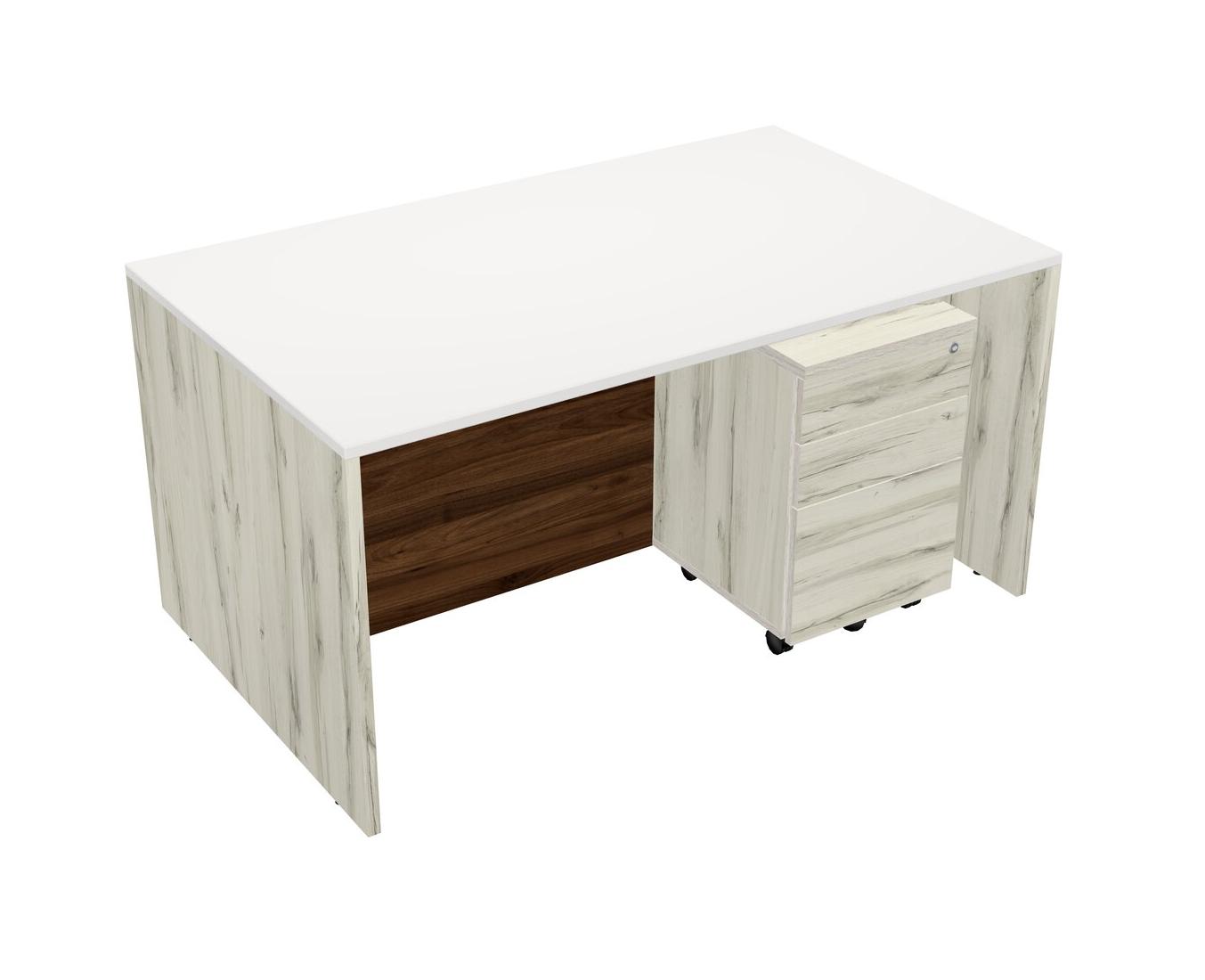 White Rectangular Office Desk Plus Heinne Holz Wooden Mobile Drawers