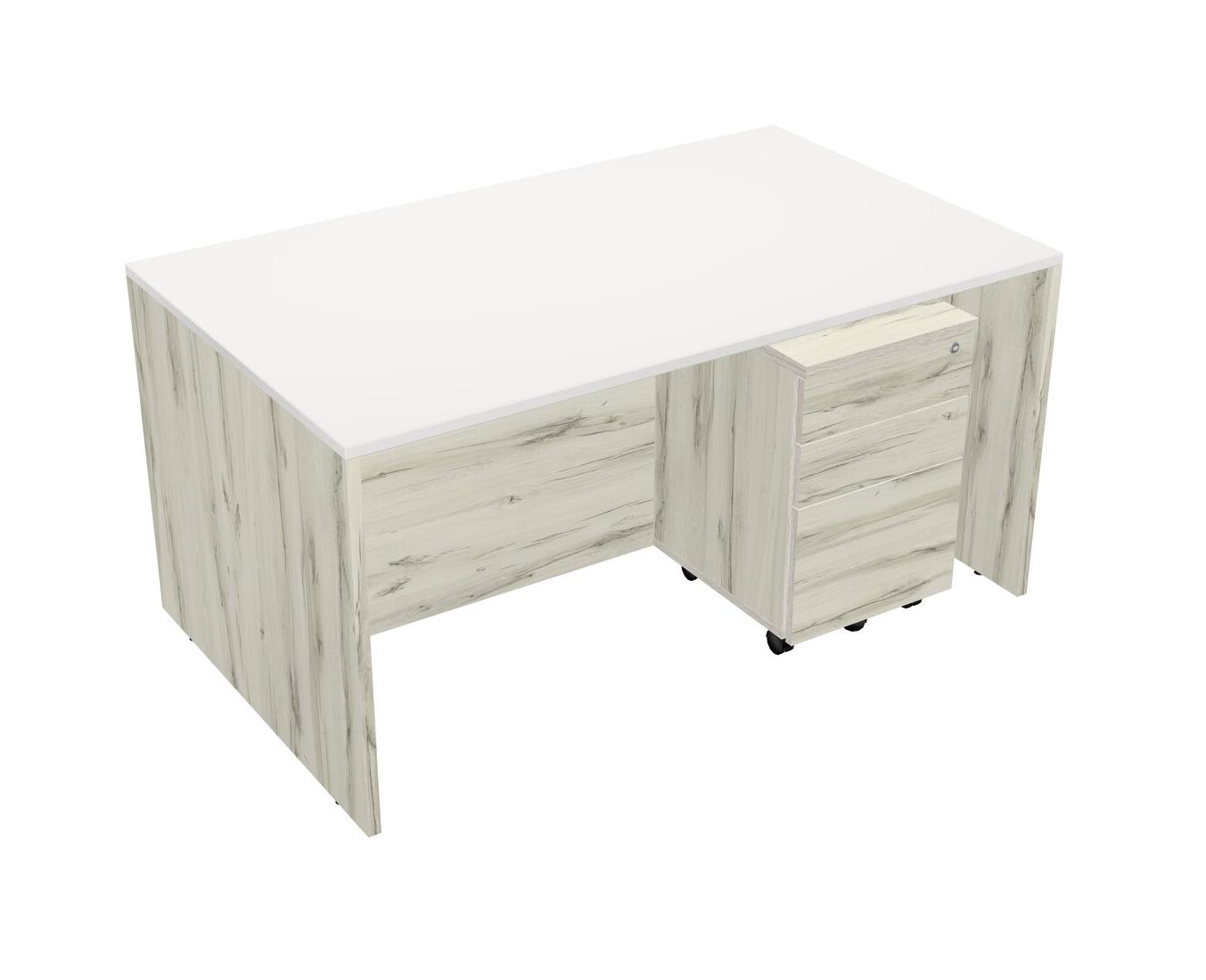 White Rectangular Office Desk Plus Heinne Holz Wooden Mobile Drawers