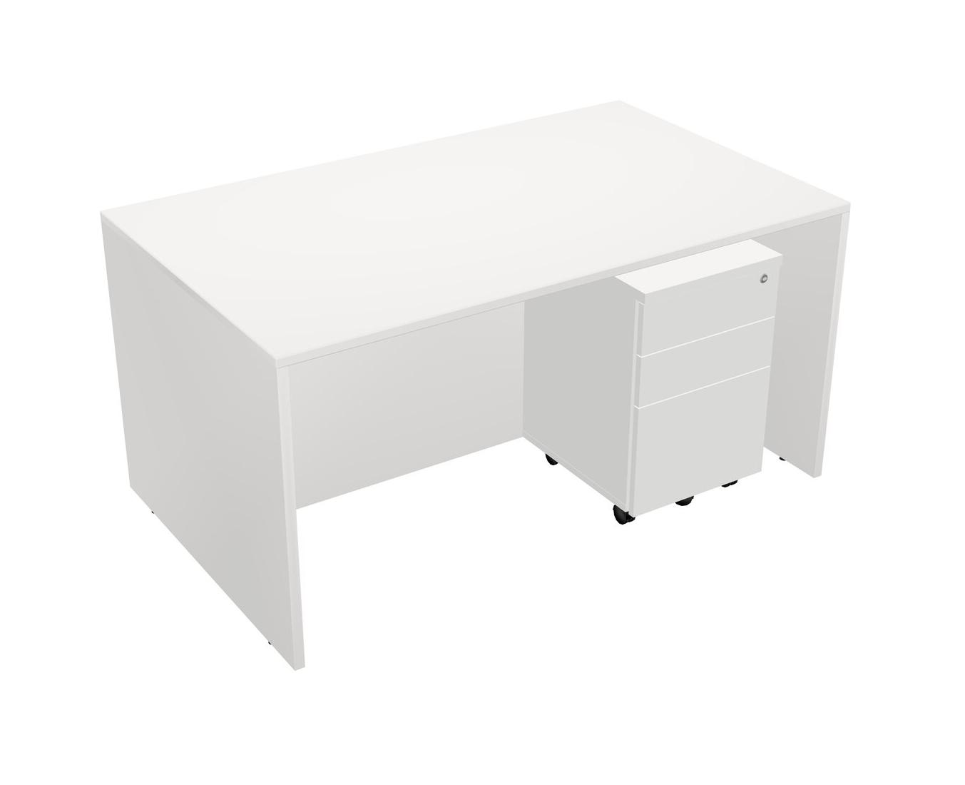 White Rectangular Office Desk Plus White Wooden Mobile Drawers