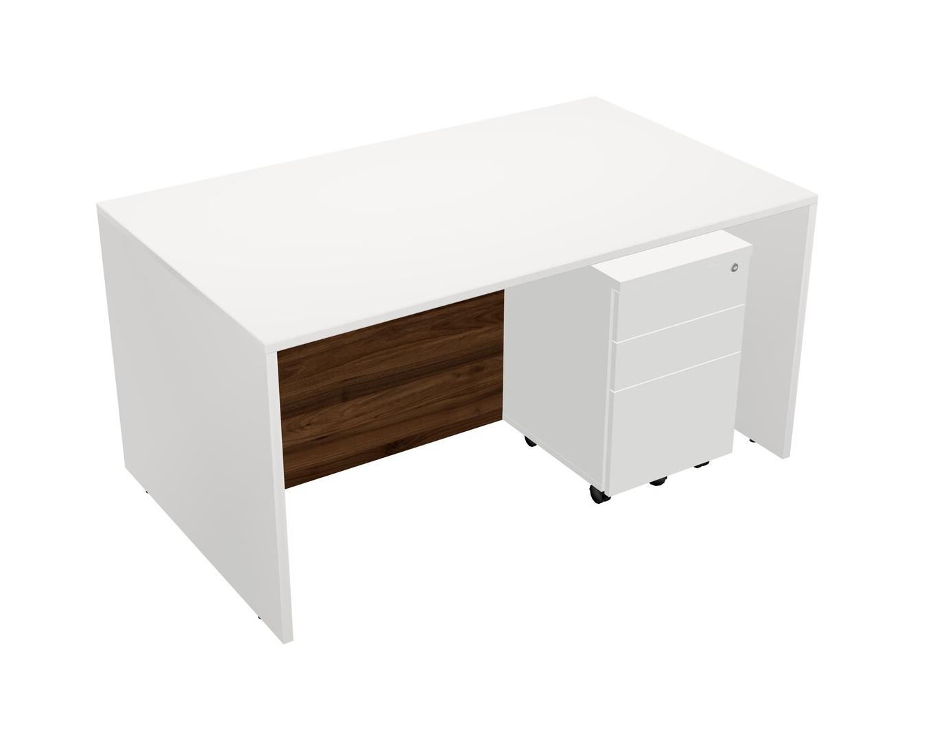 White Rectangular Office Desk Plus White Wooden Mobile Drawers