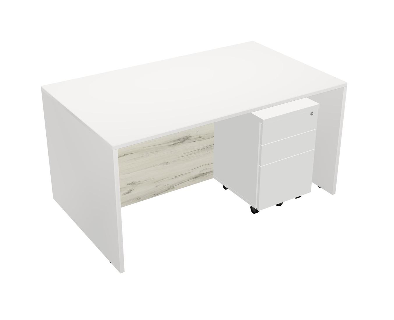 White Rectangular Office Desk Plus White Wooden Mobile Drawers
