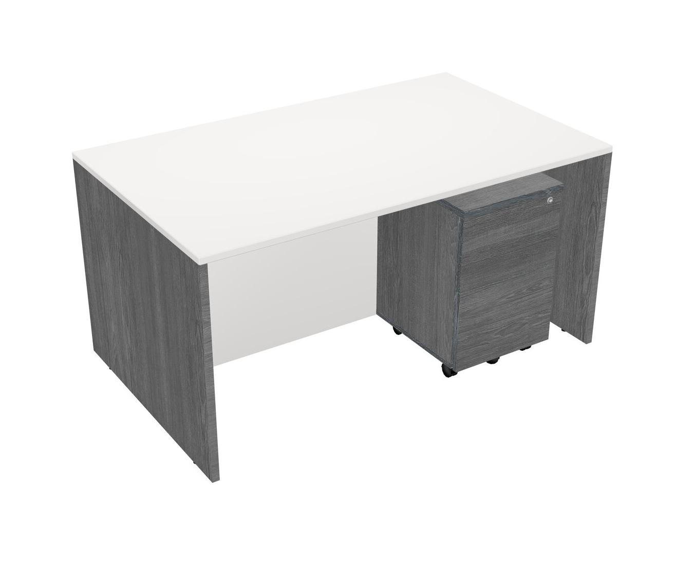 White Rectangular Office Desk Plus Grey Wooden Mobile Drawers