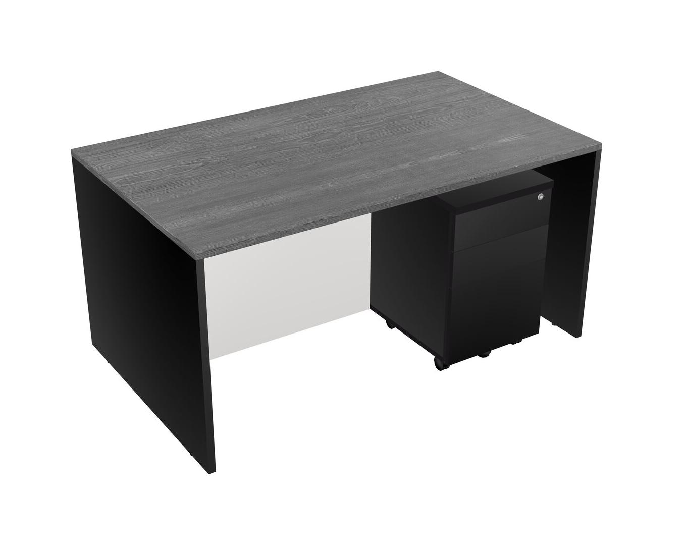 Grey Rectangular Office Desk Plus Black Wooden Mobile Drawers