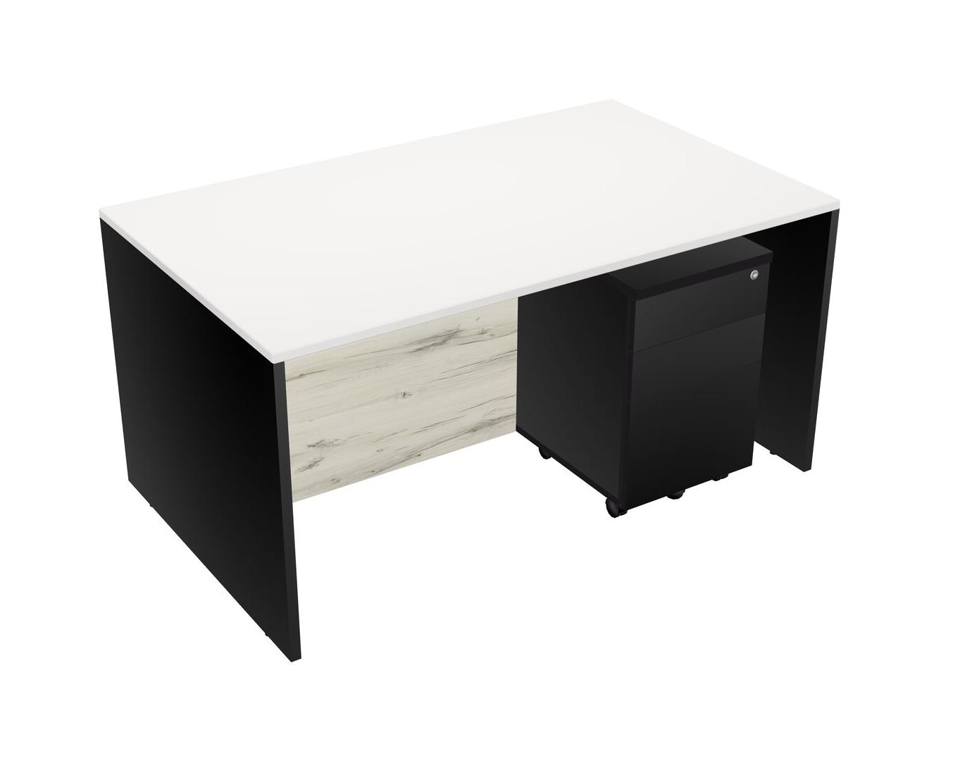 White Rectangular Office Desk Plus Black Wooden Mobile Drawers