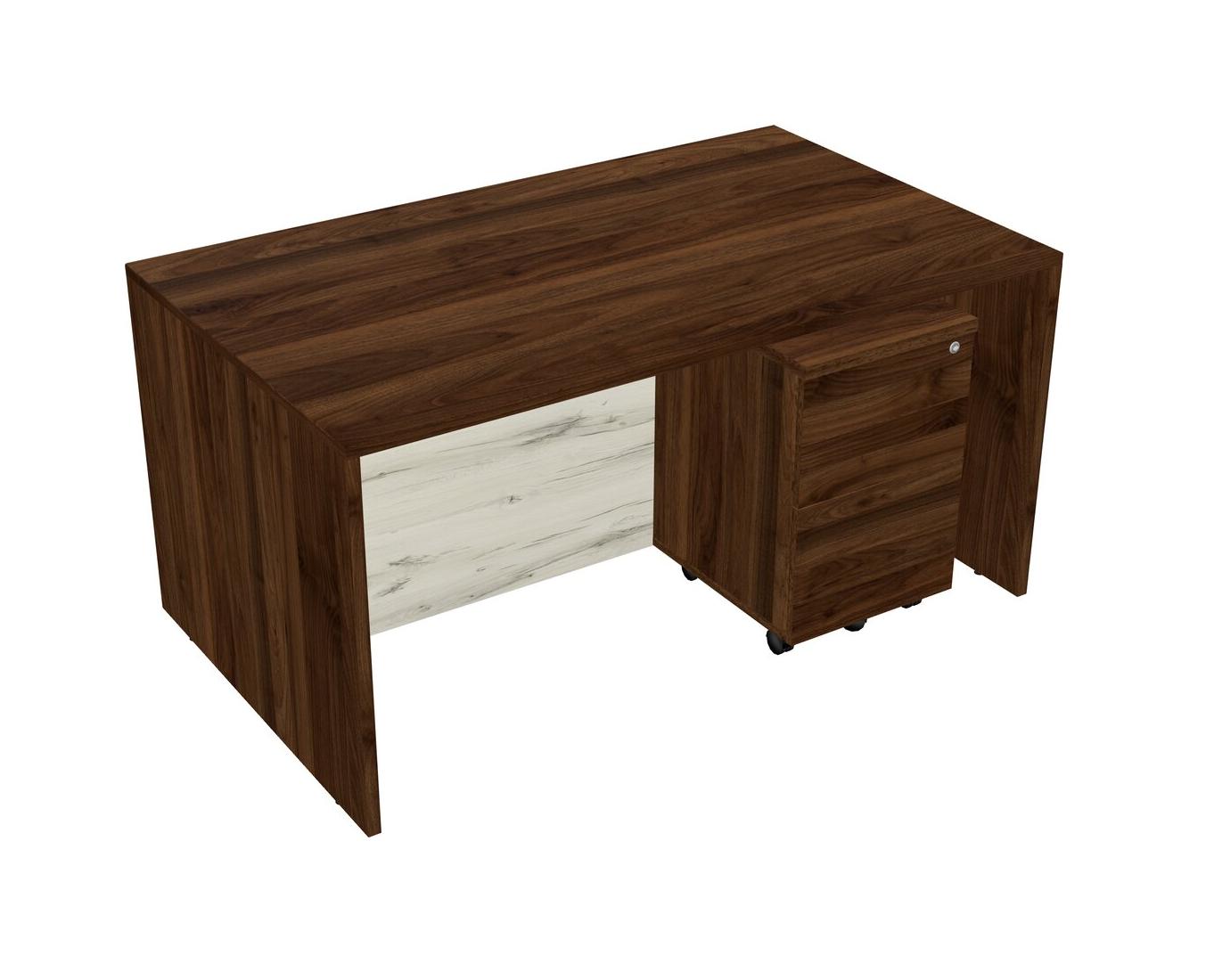 Columbia Walnut Rectangular Office Desk Plus Columbia Walnut Wooden Mobile Drawers