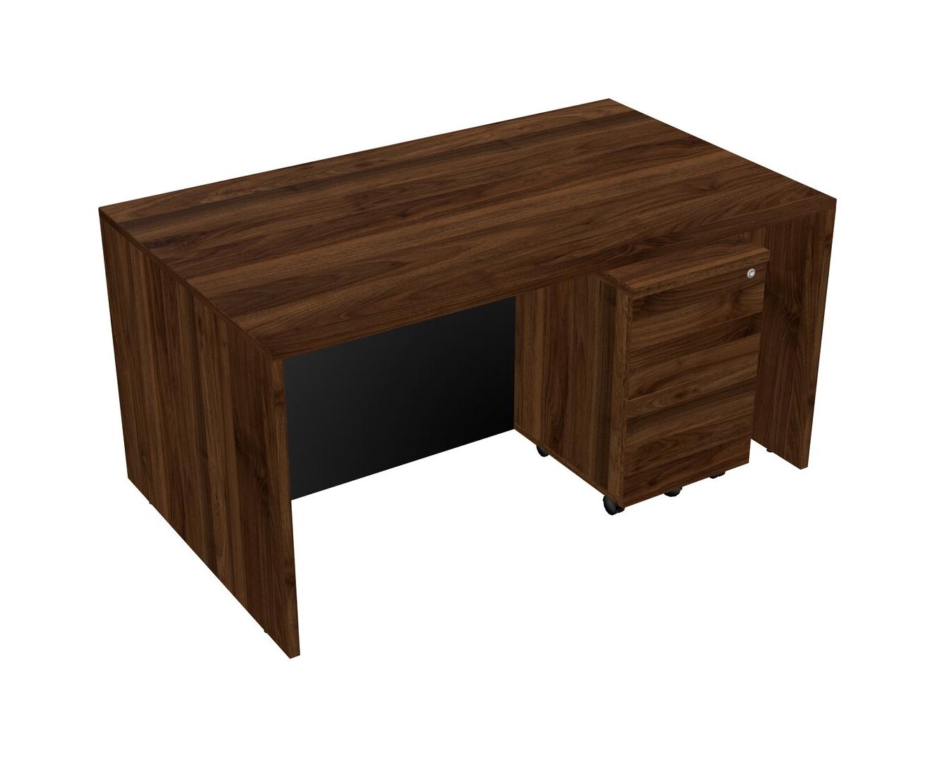 Columbia Walnut Rectangular Office Desk Plus Columbia Walnut Wooden Mobile Drawers