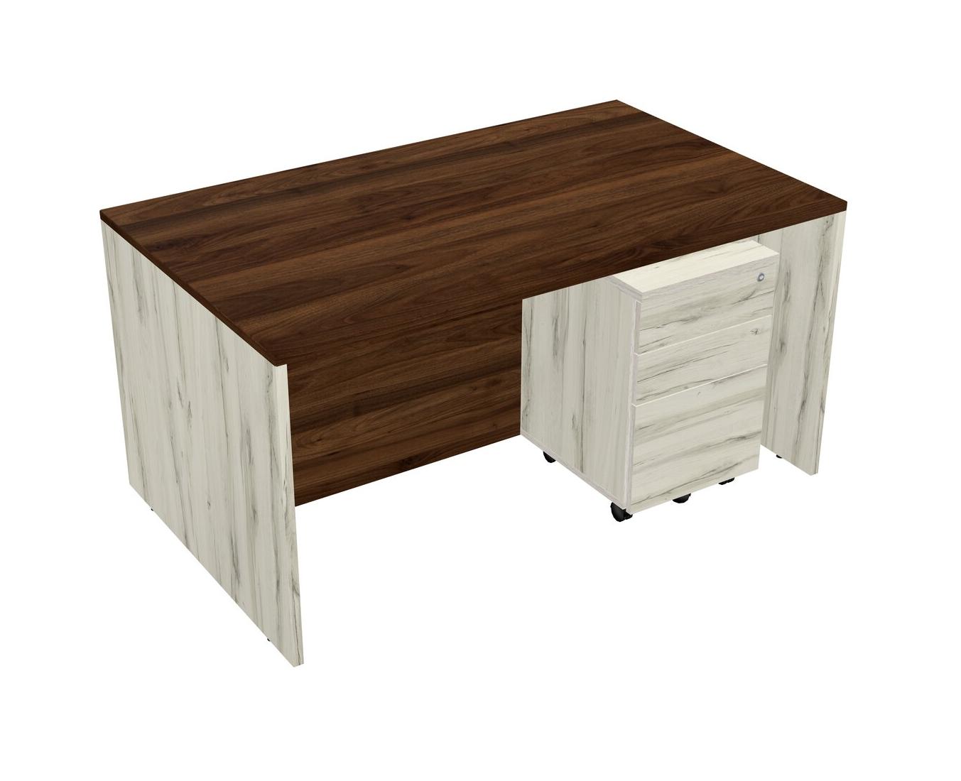 Columbia Walnut Rectangular Office Desk Plus Heinne Holz Wooden Mobile Drawers